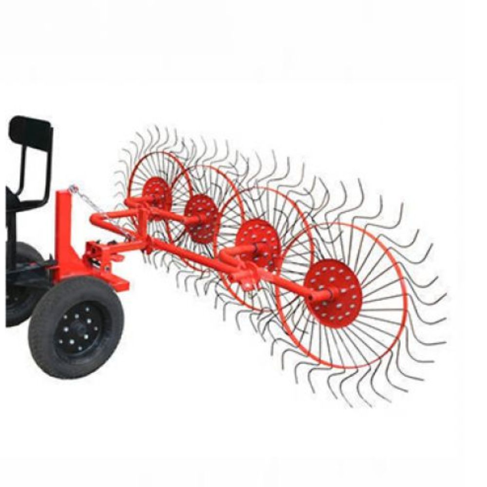 Сеноворошилка 4-колесная ВМ-4 для мотоблока - это многофункциональный агрегат, используемый для сгребания сухого, слежавшегося покоса, укладки покоса в валки и ворошения. Оператор управляет сцепленным агрегатом, сидя на удобном сиденье адаптера. Ворошилка, двигаясь с опущенными зубьями, собирает траву в аккуратные валки, что облегчает дальнейшую уборку и хранение сена. Также устройство можно использовать в качестве сеноуборочных граблей, значительно ускоряя процесс сеноуборки.