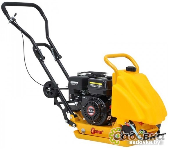 Складная ручка для удобства транспортировки и хранения. - Основание плиты из конструкционной заколенной износостойкой стали.- Открытая конструкция основания плиты обеспечивает её высокую самоочистку. Большие съемные колёса для лёгкой транспортировки. Защитный кожух приводного предотвращает попадание на него песка и почвы, увеличивает ресурс приводного ремня. Высокопрочные амортизаторы снижают вибрацию. Управление дроссельной заслонкой на ручке управления виброплитой, для удобства оператора. Бак для воды 12 л.