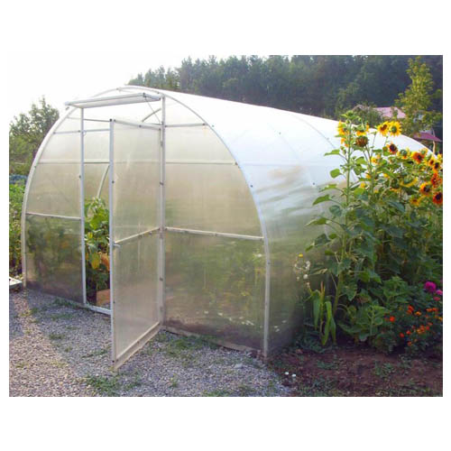 Вмонтированы две форточки и две двери для облегчения и ускорения работы в теплице. Прочный сварной каркас из высоколегированной стали выдержит тяжелые снеговые нагрузки, сильный ветер и дожди. Эргономичная арочная конструкция позволяет значительно увеличить обтекаемость теплицы, что не дает возможности снегу и воде застаиваться на крыше. Расстояние между арками – 1 м. Отличная модель для всех, что желает получать всегда свежие овощи .