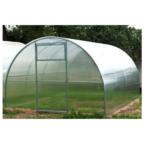Вмонтированы две форточки и две двери для облегчения и ускорения работы в теплице. Прочный сварной каркас из высоколегированной стали выдержит тяжелые снеговые нагрузки, сильный ветер и дожди. Эргономичная арочная конструкция позволяет значительно увеличить обтекаемость теплицы, что не дает возможности снегу и воде застаиваться на крыше. Расстояние между арками – 0.67 м. Отличная модель для всех, что желает получать всегда свежие овощи.